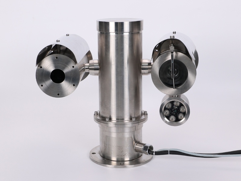 探测终端内采用高灵敏度320×256高工作温度的二类超晶格中波制冷红外焦平面探测器,通过有线网络可实时观测 VOCs 气体泄漏状态的双光图像,系统适用于工业领域 VOCs 气体泄漏的实时在线检测。例如炼油厂、海上油气开采平台、天然气储存运输场所、化学化工业、生物气体厂和发电站等。